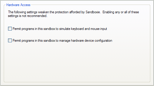 You are advised to keep the hardware access settings in their default, disabled state.